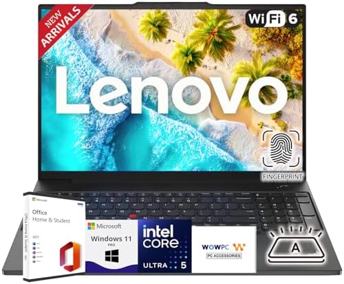 Accessories: Microsoft Office; WOWPC Recovery USB Processor: Intel Core Ultra 5 125U, 12C (2P + 8E + 2LPE) / 14T, P-core up to 4.3 GHz, E-core up to 3.6 GHz, 12MB Cache Graphics: Integrated Intel Graphics (Xe architecture) Operating system: Windows 11 Pro 64-bit Memory: Up to 64GB DDR5-5600 RAM Hard Drive: Up tp 2TB SSD M.2 PCIe 4.0 NVMe Display: 16″ WUXGA (1920 × 1200) IPS, 300nits, Anti-glare, 45% NTSC, 90% screen-to-body ratio Connectivity: Wi-Fi 6E (802.11ax) + Bluetooth 5.3 Ports: 1 × USB 3.2 Gen 1, 1 × USB 3.2 Gen 1 (Always On), 1 × USB-C 3.2 Gen 2 (Data + PD 3.0 + DP 1.4), 1 × Thunderbolt 4 / USB4 (40Gbps, Data + PD 3.0 + DP 1.4), 1 × HDMI 2.1 (up to 4K/60Hz), 1 × Ethernet (RJ-45), 1 × Headphone/Microphone Combo Jack, 1 × SD Card Reader Built-in Speakers: Stereo speakers, 2W ×2, Dolby Audio Keyboard: Backlit, US English, with Numeric Keypad + TrackPoint, Fingerprint Reader Built-in Webcam: FHD 1080p Camera with Privacy Shutter, Dual Microphones Color: Graphite Black (Aluminium Top, PC-ABS Bottom, Anodized Sandblasting) Dimensions (L × W × H): 14.25 × 10.3 × 0.78 inches (362 × 262 × 19.9 mm) Weight: 3.9 lbs (1.78 kg) Battery: 57Wh, 65W USB-C Power Adapter